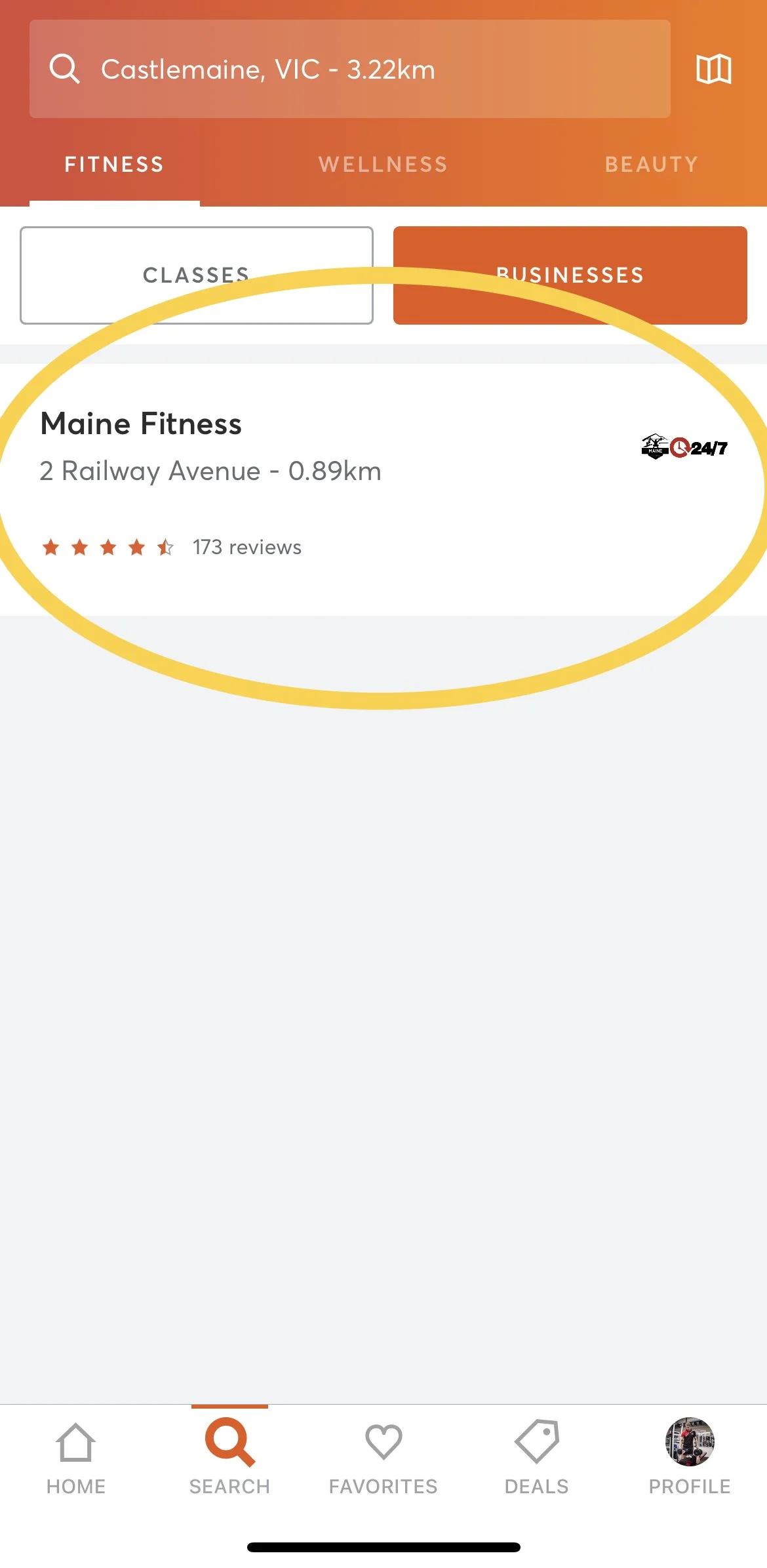 Click on Maine Fitness at 2 Railway Avenue Castlemaine and favourite us by clicking the ♡ symbol. (Please note there is a second location listed in Bendigo for our Bendigo studio, don’t click this one)